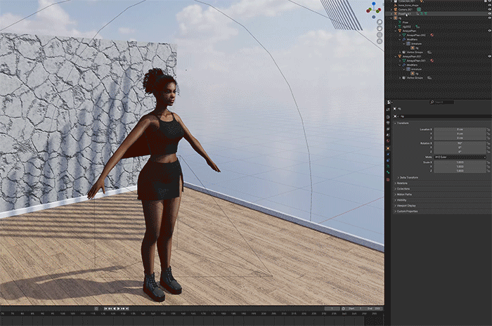 Now our model should have a pose, if not just hit play or change the timeline frame (you can also use the timeline to change poses if you are using an all-in-one pose pack):